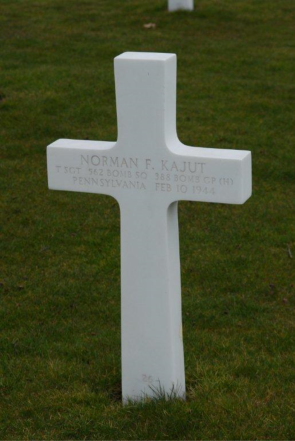 Radio Operator/schutter T/Sgt Norman F. KajutRadio Operator/schutter T/Sgt Norman F. Kajut, is is begraven op American warcemetery Margraten, Vak G Row 16, graf 26foto: Harald VerweijTailgunner S/Sgt Louis LeFevre, is begraven op American warcemetery Margraten, Vak L Row7, graf 18foto: Harald VerweijPilot 1/Lt James FeeneyPhoto: Dick Henggeler 388th Bomb GroupVLIEGTUIGCrashdatum 10 februari 1944Onderzoeksdatum??RadiocodeXD-QSerienummer42-31115 Eenheid388 BG/562 BSBoeing B-17GUitgeestJAARLOKATIE