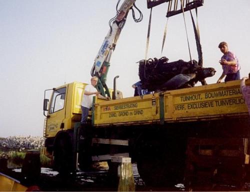 naar het wrak. Bij dit onderzoek werd een van de motoren geborgen aan de hand waarvan